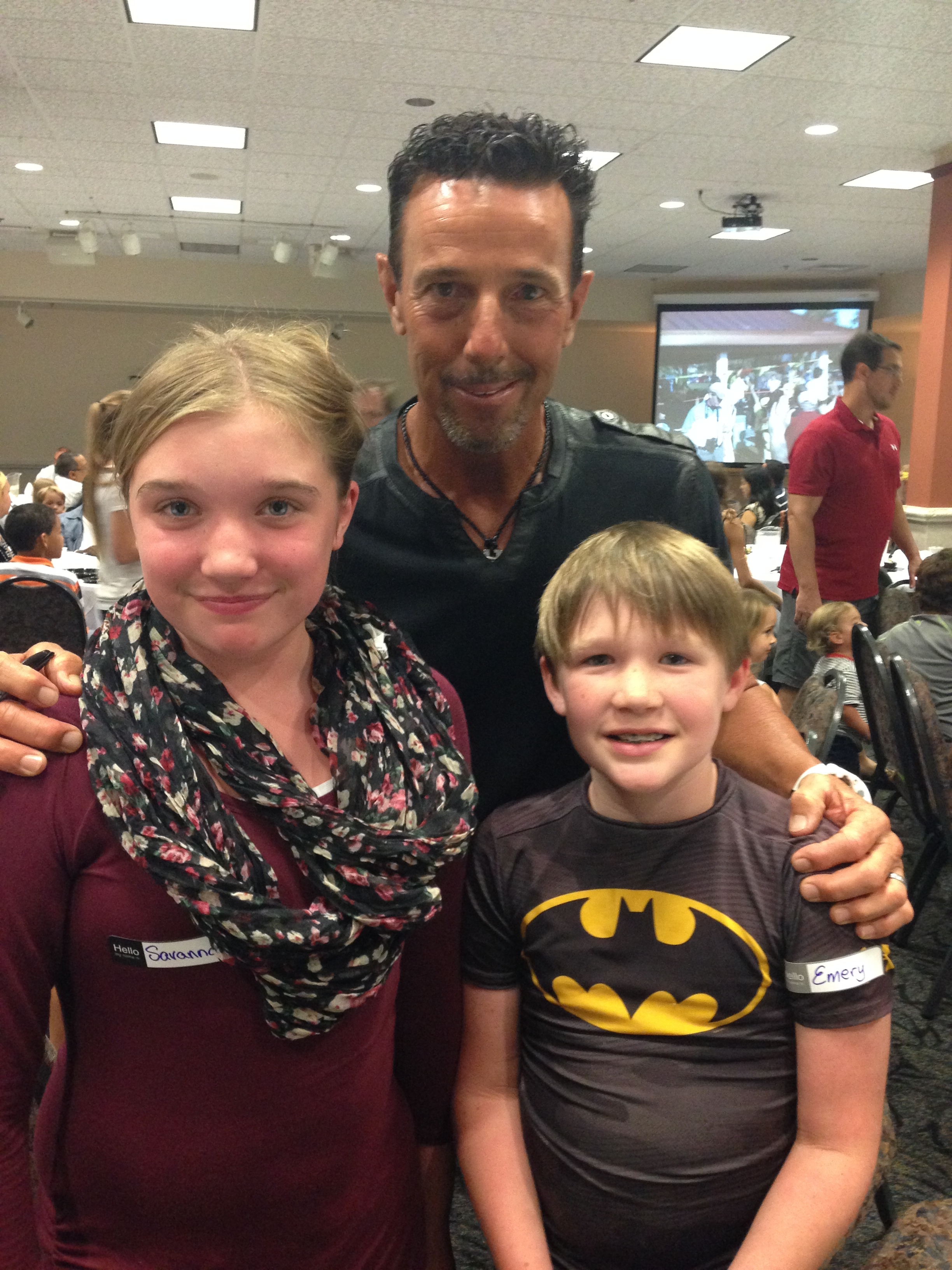 Before the park day was over, we were invited to sit at a table with a family who had extra tickets to the Saints International fundraiser that night. And FUN it was! The evening started with a silent auction and spaghetti dinner, but quickly moved to a time to get autographs from Ex-Pro ball players who now work for FCA. After that they brought out comedian Tom Toombs who had us all in stitches with his crazy antics!
