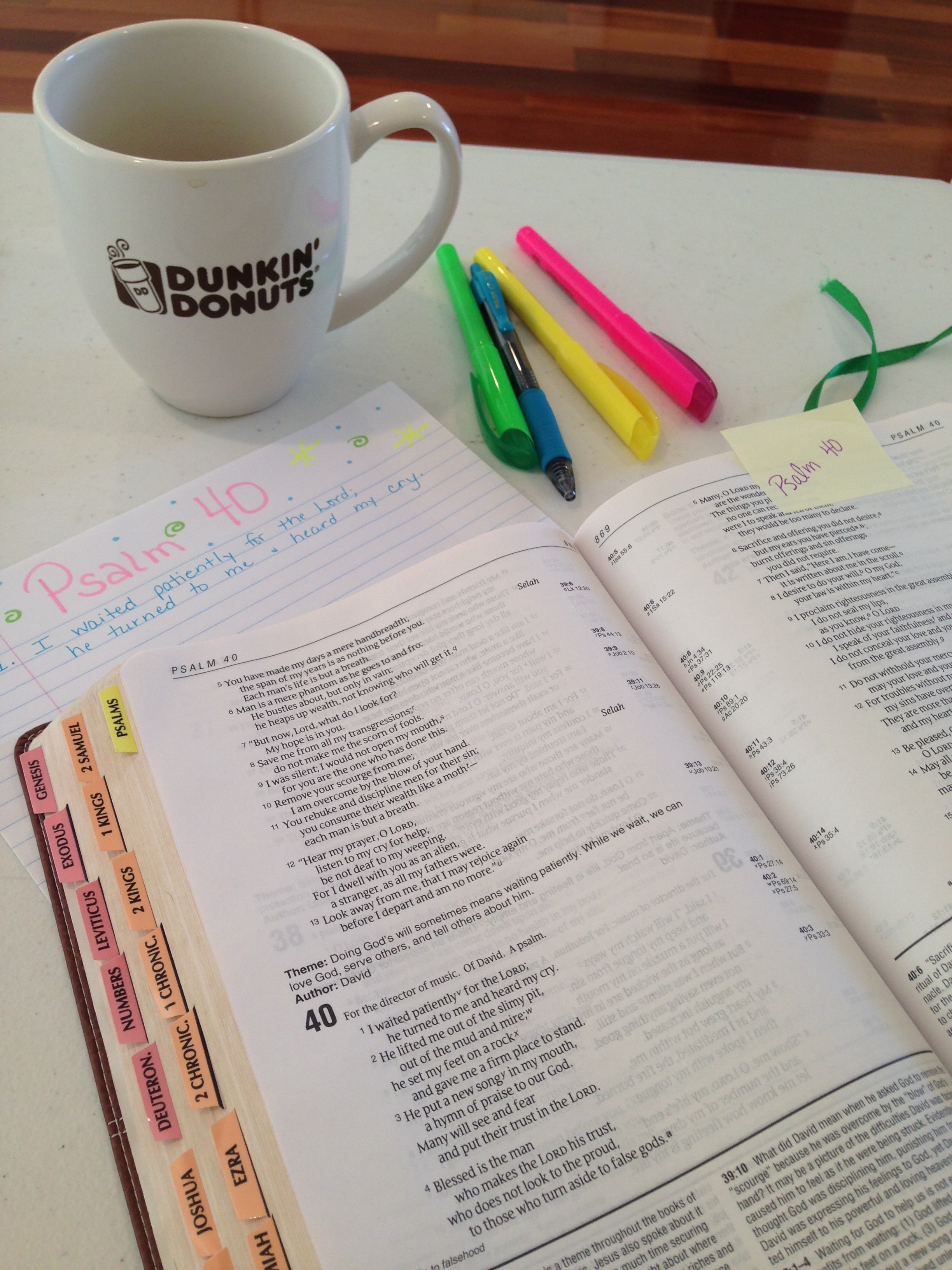 I am trying to memorize all of Psalm 40. So far, I’m at verses 1-3. It’s baby steps, People. I’m terrible at memory work. But that doesn’t mean I shouldn’t try to do it. Besides, it’s hard to tell my kids to do theirs if I’m not doing mine! Amen?