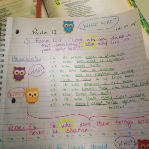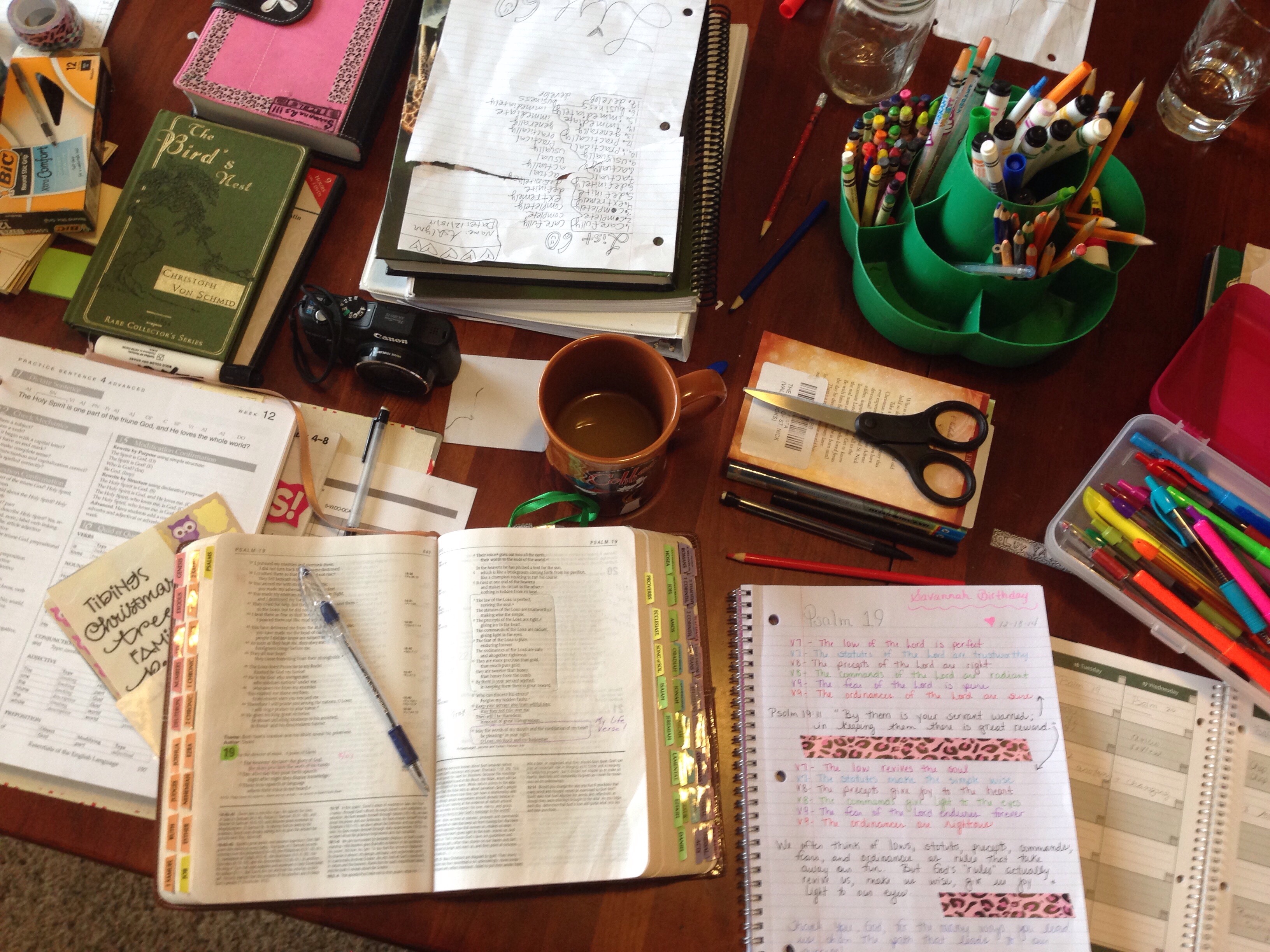 But why did I start this post again??? Oh yeah! The calm in my above described storm. Among books about history and math. Next to spelling lists and grammar rules. Opened opposite science journals, pens, pencils, scissors, and crumpled up papers. There sits a book that brings me peace. It gives me direction and offers hope. And in the midst of spinning, tattling, and threatened yellow school buses, it is just what I need, each and every day!